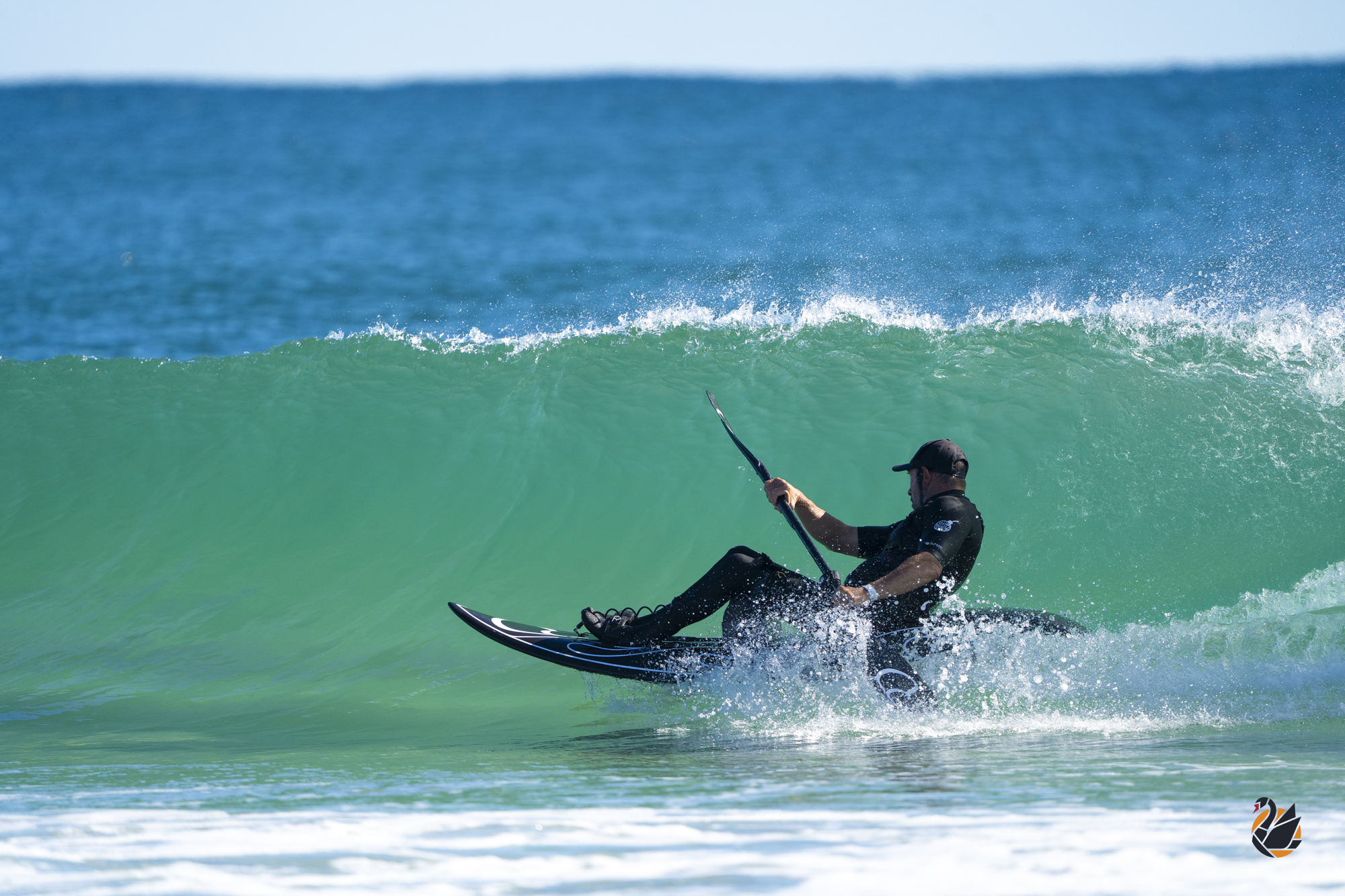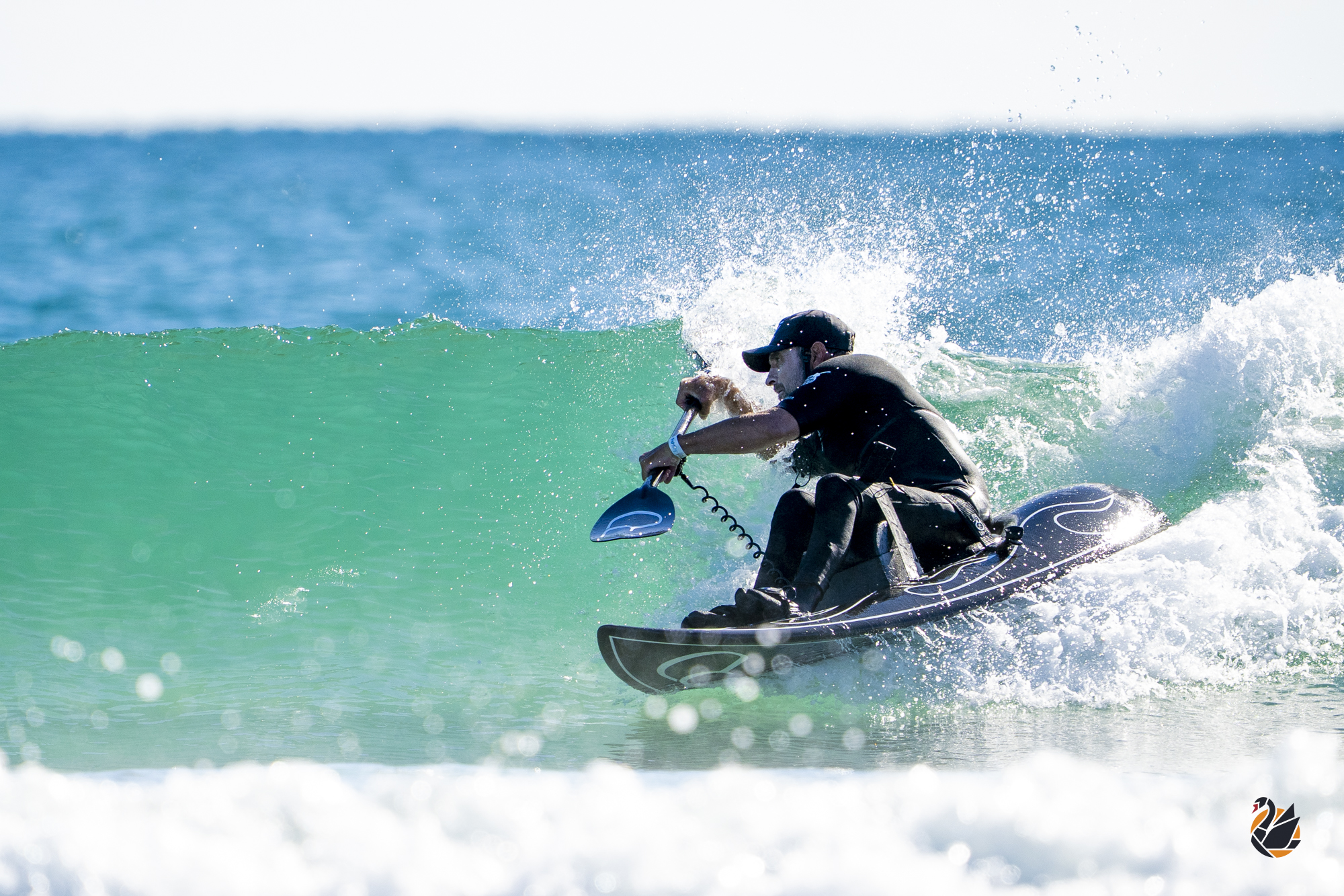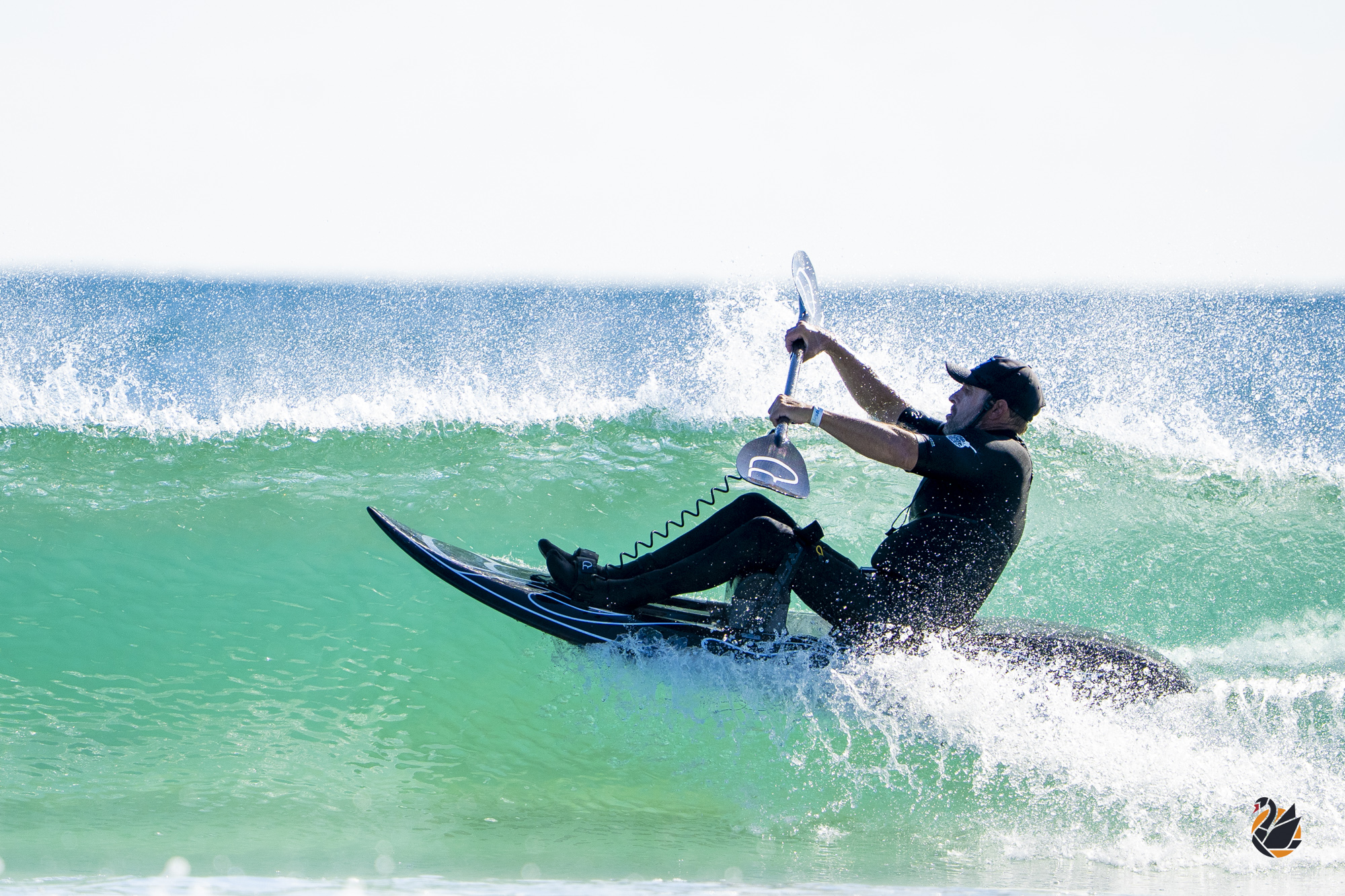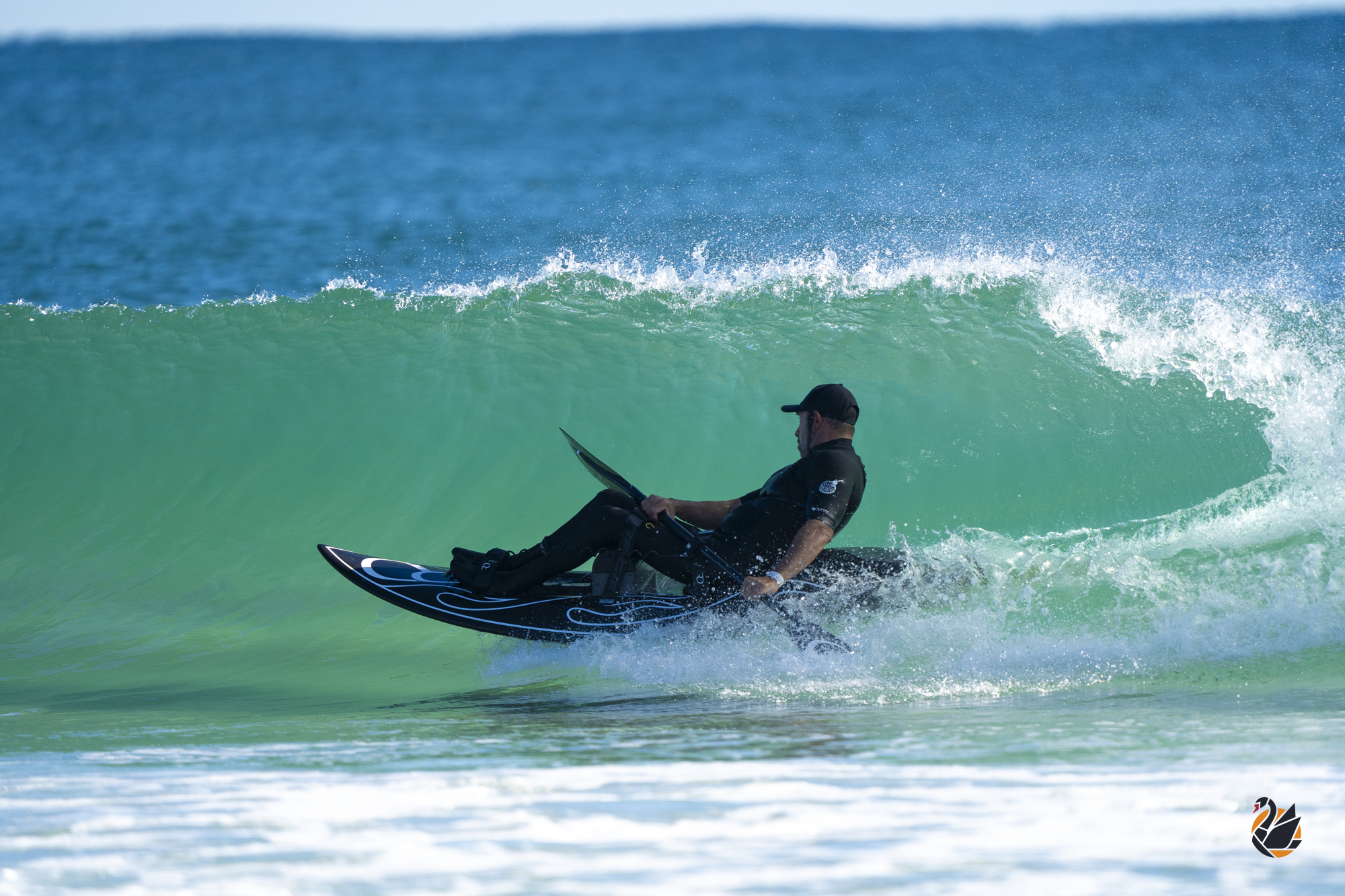 With small surf and a late start to the Brightsky Australian Pro Adaptive Surf Championships, waveski surfer Michael Johnson took the opportunity to stay loose and sharp with some time in the water. Although, it seems he’s not a fan of the sun — preferring to hang in the shade.